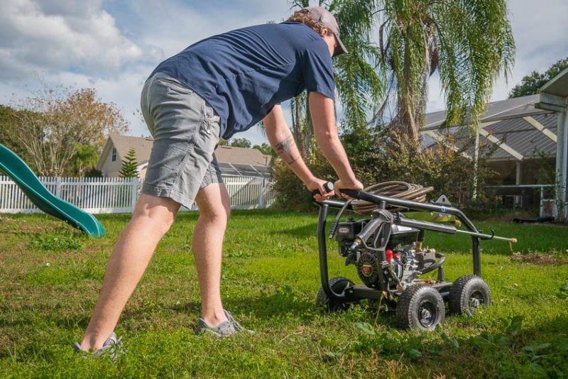 In terms of wish list items, there arenโt many for this unit. However, one is for handles that reach up higher. Whether they pivot and lock or remain fixed, another 10 inches of height would let us move the pressure washer without having to bend over.