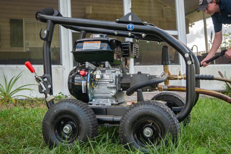 Thereโs a lot to love about the components Simpson chose to build this commercial-level pressure washer. The engine is a Honda GX 200, and itโs California-friendly. The pump is a AAA industrial triplex. Youโll have a tough time finding a better combination than that in this price range.