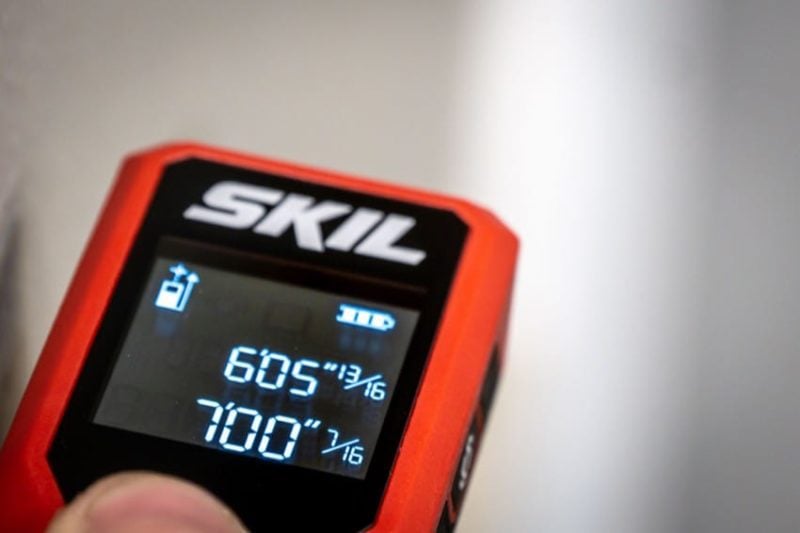 The Skil Laser Distance Measure can measure up to 65 feet in 1/8โณ increments. Particularly useful, it takes the measurement from the back of the unit so you can butt it up against a surface without having to calculate an offset. Some laser measures have a way to change this from the rear to the front of the unit, but Skil only measures from the back of the tool.