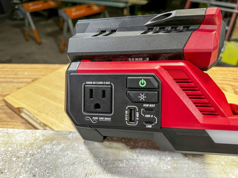 This inverter has a fairly compact and lightweight design. As a bare tool, it weighs just 2.2 pounds, and adding the 2.5Ah battery I used for testing, the weight went up to a manageable 4.7 pounds. The size of the unit itself is not much larger than the battery, so storage should be no issue.