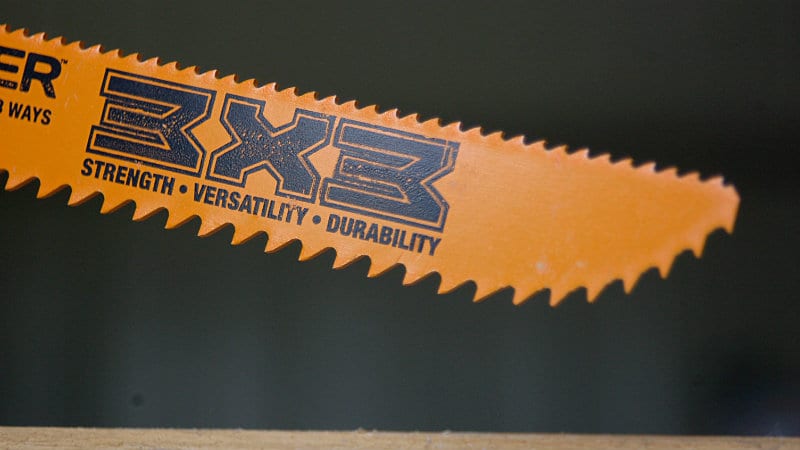 I get the double-sided blade. There’s no doubt that the ability to cut from the top and bottom is valuable. I’d assume that the same TPI (teeth per inch) and tooth direction would be the way to go. The Spyder 3×3 Reciprocating Saw Blade offers two separate TPIs. The bottom pulls toward the shoe, and the top pushes away from it. This was a source of contention in our review of the prior generation, but I’m going to take a fresh look at it to see if I can find an optimal way to make use of this innovation. Spyder also added 8% Cobalt to the mix, which should result in a tougher blade. We’ll see if that makes a difference in the cutting experience.