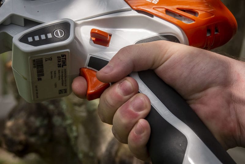 The Stihl GTA 26 is essentially a 12V mini chainsaw sporting a 4-inch bar for pruning work.