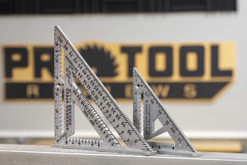 The Swanson Aluminum Speed Square is one of our top 10 go-to tools in the framing and construction business. It is simply one of the tools you will invariably keep in your tool belt. Youโ€™ll find yourself using it for cutting simple lumber. You can also make complex angle calculations and measurements on roofing trusses. We decided to take a look at a few of Swansonโ€™s classic Speed Squares and highlight some of the improvements theyโ€™ve made on the latest models. Today, weโ€™re looking at the Speed Square Pro (S0100-A), Speed Trim Square (S0145), 7-inch original Speed Square (S0101), and the Big 12 Speed Square (S0107).