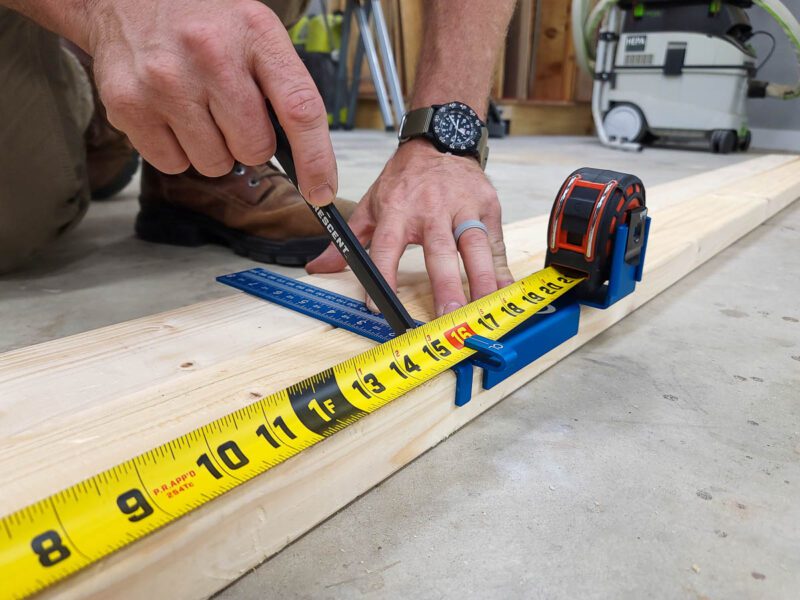 The unique design seamlessly integrates with a standard tape measure to mark stud locations in one fluid motion, eliminating the need to switch between a traditional square and a tape measure constantly.
