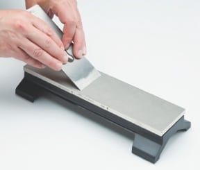 I must confess to having a Zen Masterโ€™s fondness for Japanese water stones, but they are a lot of rigamaroleโ€”flatness being the most problematic. The DMT Diamond Plate is dead flat out of the box and always will be. When reforming a really dull edge, nothing cuts faster than diamonds. When sharpening very narrow tools, such as an one-eighth inch wide bench chisel, it is very easy to gouge a trench in a water stone. For this reason I donโ€™t let my students touch mine! The diamond plate takes this in stride, and I feel that I can now fearlessly let anyone borrow it. Like the eight-hundred pound gorilla, you canโ€™t hurt it.