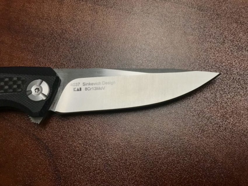 The next thing that caught my attention was the blade itself. The Kershaw Atmos features a drop point blade, which I prefer for its versatility. As far as the actual steel goes, Kershaw uses 8cr13moV steel, a Chinese-produced steel alloy that has a composition similar to AUS-8. Its solid mid-grade steel sharpened up to a razor edge pretty easily, though it does lack some edge retention when used extensively.