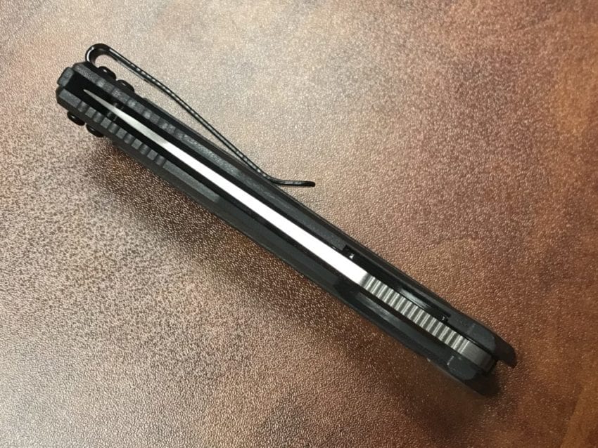 The Kershaw Atmos clip can be repositioned on either side of the handle in a tip-up position only. When closed, it only takes up 4″ worth of space. Because the Atmos is so light and thin, you’ll find that you almost forget that you’re wearing it.
