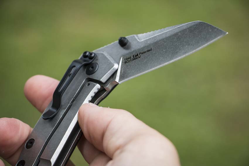 The blade on the Kershaw Barge is made from 8Cr13MoV steel with a nice stonewashed finish. I like this steel because itโ€™s easy to sharpen (we use a Lansky sharpening system). The downside is that it doesnโ€™t hold an edge for nearly as long as an SV30 or SV35 blade. After cutting open several cardboard boxes I could already feel the edge had diminished. Still, you can reclaim the edge in just a few minutes, and itโ€™s hard to criticize at a $35 retail price point. For comparison, Iโ€™ve had the Zero Tolerance 0095BW knife doing the same work for months and only the very tip has become dull. Of course, that knife dwarfsย the retail on the Barge by over $200.