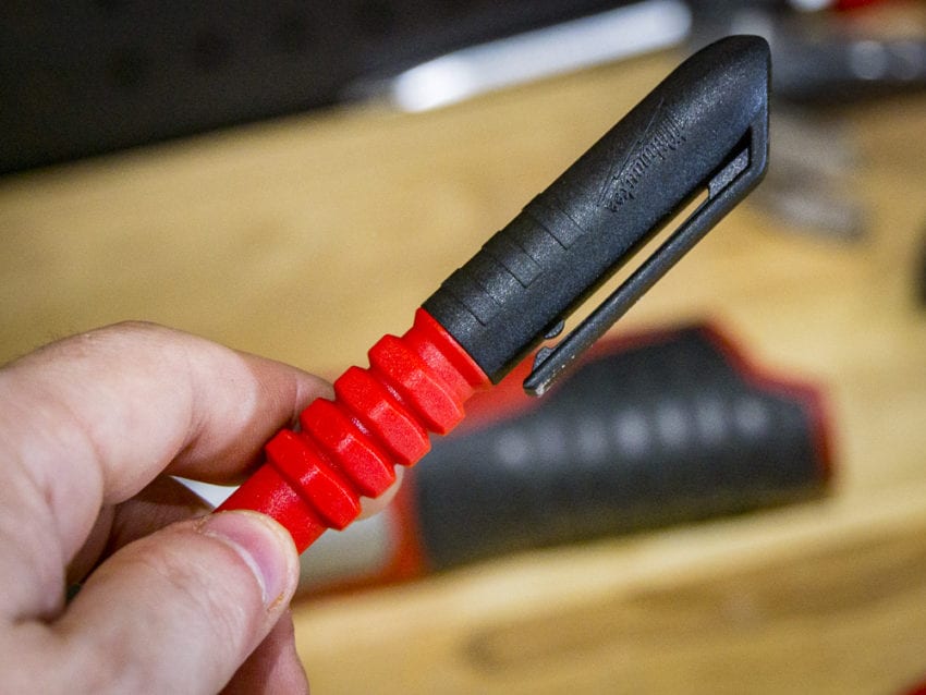 One of the more helpful features with the Milwaukee Multipick revolves around the overall size of the instrument. At around 11โณ, it can clip onto any of your pockets. Itโs longer and thicker than a Sharpie and itโs possible to break or bend the clip if you snag it.