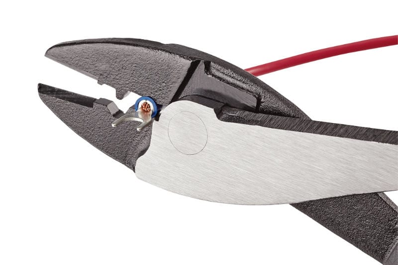 Available this October areย the Milwaukee Crimping Pliers (48-22-6103), which feature a cutter at the tip for more efficient access into electrical boxes. They also have the ability to crimp both insulated and non-insulated wire during the install of stranded wire connections. Aย patent-pending reaming head design feature allows for quicker deburring of EMT.