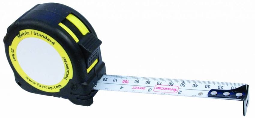 It was, therefore, a happy day when I learned of the ProCarpenter Series of tape measures offered by FastCap. The concept for these tapes wasinspired by the aforementioned True32 Corporation, a company in Richmond, Kentucky, that builds 32mm production machinery. Possibly the most useful model during the layout process is the 12โ ProCarpenter Metric/Standard tape ($6.95). Itโs graduated in inches on the top edge and millimeters on the bottom.