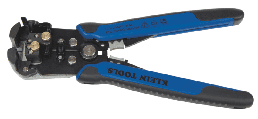 Klein Tools just debuted a new Self-Adjusting Wire Stripper/Cutter (11061) that has a stripping head that adjusts to accommodate 10-20 AWG solid, 12-22 AWG stranded, and 12/2 & 14/2 wire. Youโre going to want to use this tool when youโre working in panels and other locations where you are expecting to deal with multiple wire types and gauges. The tool uses a tensioning knob to adjusts for the correct amount of required force in order to strip the wire correctly every time. Thereโs also an adjustable stopper so you can configure the exact desired length of your stripped cable. If that werenโt enough, Klein even added a wire cutter thatโs built right into the handle.
