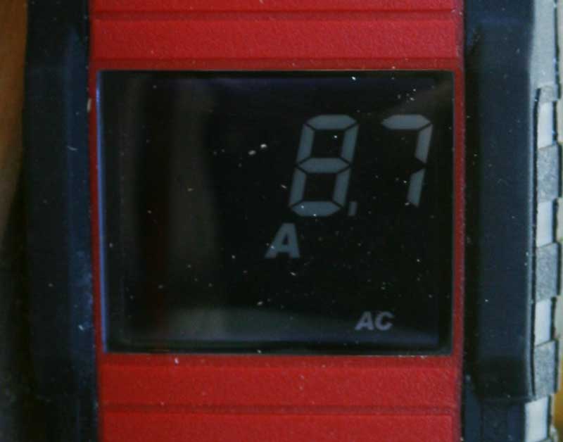 During this job we also had a desire to measure the current draw on a miter saw we were reviewing from a competing tool manufacturer. It was a brand new 12-inch compound miter saw and we found that it drew 8.7 amps unloaded, but picked up to 11.4 amps when cutting through a single pressure-treated piece of 4ร4. Inrush current was measured at around 28 amps, but that number was a tad unpredictable since the tool had no way to capture the highest reading, nor did it come with an inrush current mode. This showed us that inrush measurements arenโt practical with this tool.