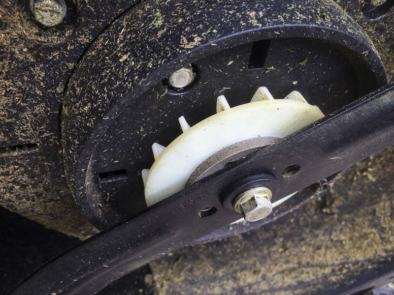 The lower speeds are perfect for cutting while the maximum speed is perfect for when you need to put away the mower when your work is finished. A rear-mounted motor drives the left rear wheel via a gearbox. Speaking of wheels, EGO upgraded the wheel bearings on this new mower, giving it a smoother push and further reducing frictionโall things that increase the mowerโs run-time and ease of use.