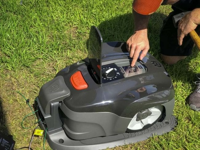 When the battery drops to 20%, the mower looks for the guide wire and finds its way back to the charger on its own.