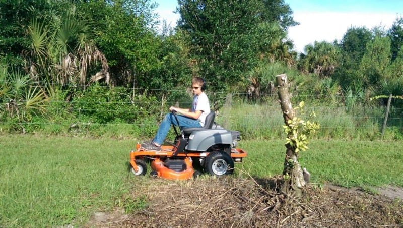 After a quick read of the SmartSwitch pamphlet supplied, I delivered the correct sequence, and vroooom, itโ€™s alive. The motor fired to life almost immediately after pushing the button. Grab the zero turn sticks, pull them back, and back the mower down the trailer ramps. That beautiful, somewhat-overgrown bahia-grass lawn was begging to be cut down in rapid succession. Move the throttle up to full-rabbit, engage the blades and off I went, for about a strip and a halfโ€ฆwhen the mower ran out of gas. Shame on me, for not checking the vitals before I ever started it for the first time. After a fill of the tank, I was off again on the maiden voyage of the new Husqvarna RZ 54i.