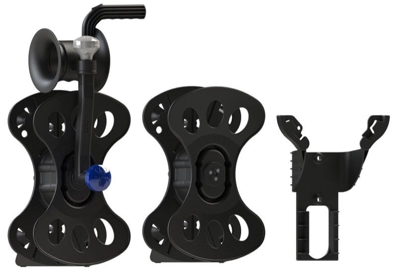 Martin Product Designs (MPD) has introduced the FreeReel, a reel system designed to keep cords and hoses cleaner. It also promises to keep hosesย kink- and tangle-free and allow them to rewind faster than other reels. The FreeReel is madeย for the mobile use, although a wall mount accessory is available. ย Thatโs not to say that consumers canโt benefit from it, but Pros are being targeted. The body of the FreeReel cord reel is made from glass-filled nylon and Delron, and the metal parts are stainless steel. If youโre tethered to an air tool or the wall, you know the potential inconvenience of cord and hose. We were ready to see what the FreeReel Cord Reel and Hose Reel had to offer.