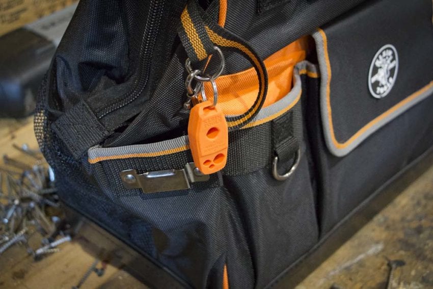 - Attaches to tool bags or backpacks with the included stainless steel key ring