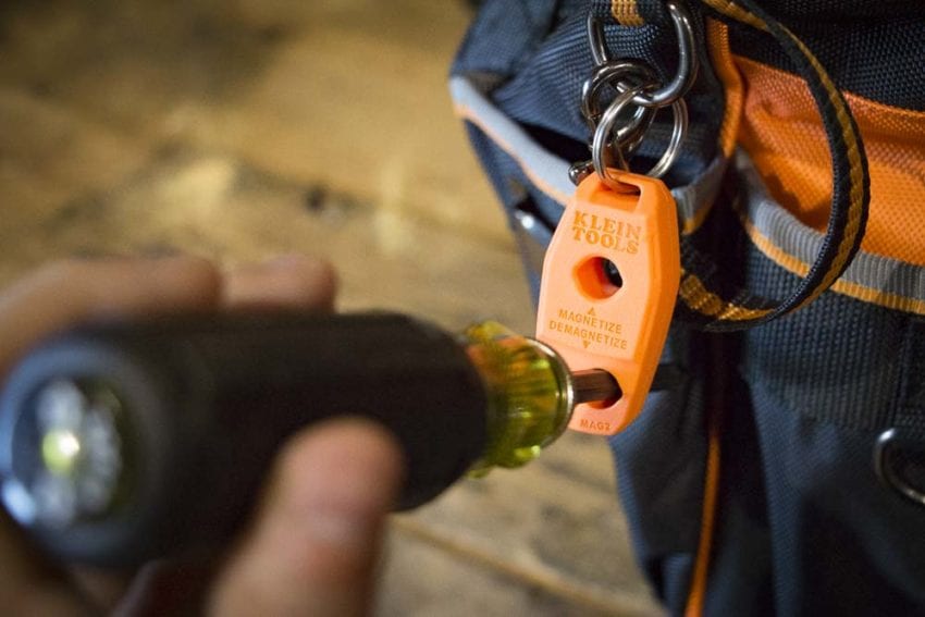 Iโve been horsing around with the Klein magnetizer for a little while now, and it works exactly as advertised. The magnetizing and demagnetizing processes are simple and effective. And, I can attach it to my backpack, or on a ring on my tool bag. At around 10 bucks, this seems like a great little accessory to have for those times when you come across a screwdriver or bit without a magnetic tip. Itโs also extremely helpful for those times when youโd prefer something without a magnetic charge, like when youโre working around metal shavings. Ultimately, you might not need to use this very often, but itโs super helpful to have around for those rare occasions when youโd like to reverse the magnetism of your tools.