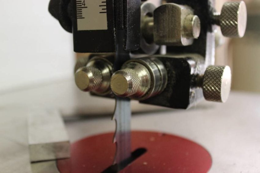 When my new blade arrived, I was ready to run a pile of wood through it. The blade change-out was tool-less and quite simple. I removed the table block, opened the upper and lower doors, opened the upper and lower blade guards,ย swung the quick tension lever to โfull release,โ and pulled the old blade outโฆ all in all, it took less than a minute. I did the reverse to install the new blade and with the tool-less tracking and guide-bearing setup, the new blade was once again, readily dialed in.