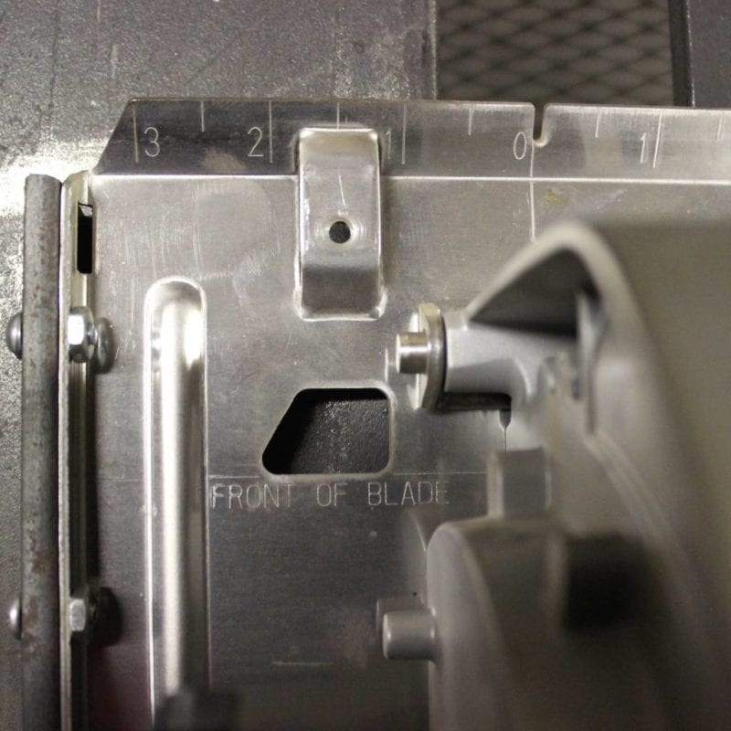 The handle positions felt comfortable and natural; the plunge lever was awesomeโI wish all my circular saws positioned a lever here, and the blade guard has a window into the chip collection so you can see when itโs ready to be emptied out. One other really beneficial feature is the blade point-of-entry indicator. I didnโt want to cut all the way through my jig at the end of the pass, so it was great to be able to glance at the shoe and see exactly where the blade is so that I can stop in time. This isnโt really a necessary feature on a wood saw, since you can see the actual blade. Here itโs a perfect example of the subtle features Milwaukee incorporates into their tool design.