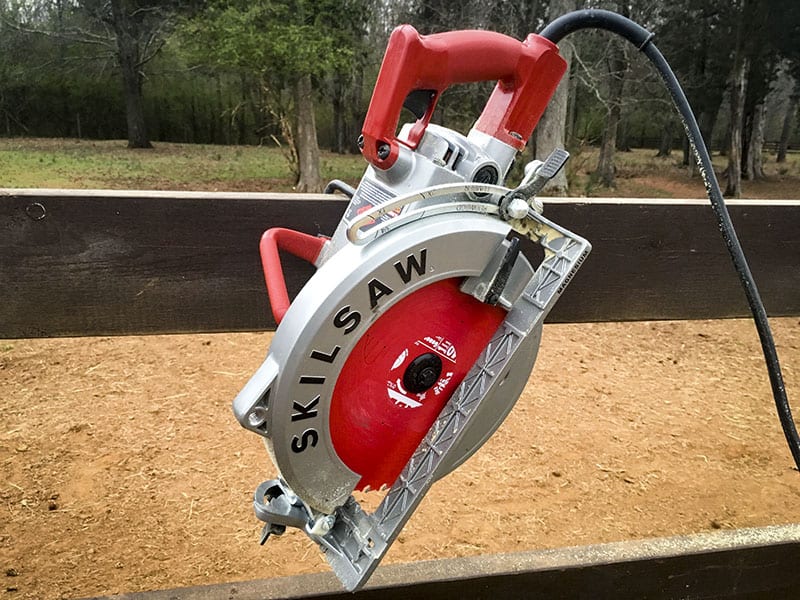 The Skilsaw Sawsquatch design has one major purpose in mind โ cut 4X material in one pass. Thatโs fortunate for me since Iโve been looking for ways to cut the tops off of fenceposts on our farm more easily. We set them well into the ground so theyโre solid, but theyโre far from perfectly in line at the tops. So far my options have been a recip saw, chainsaw, or two passes with a standard circular saw. None of these are terribly attractive solutions but I typically default to the circular saw for a faster, cleaner cut.