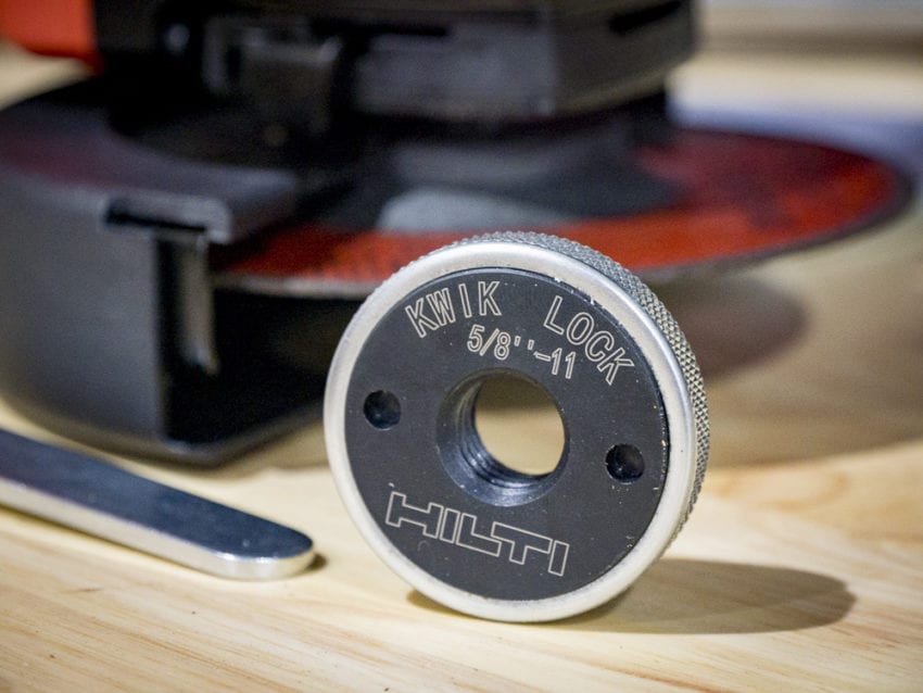Speaking of features that are worth their weight in gold, Hiltiโs Kwik Lock Flange gets a gold star from me. Since very few grinder actually store the spanner wrench on board (Kobalt is one that does), they have a tendency to go missing. With a Kwik Lock Flange, you can eliminate the need for the spanner wrenchโฆ almost. Youโll still need to stick with the stock flange for thin cutting wheels.