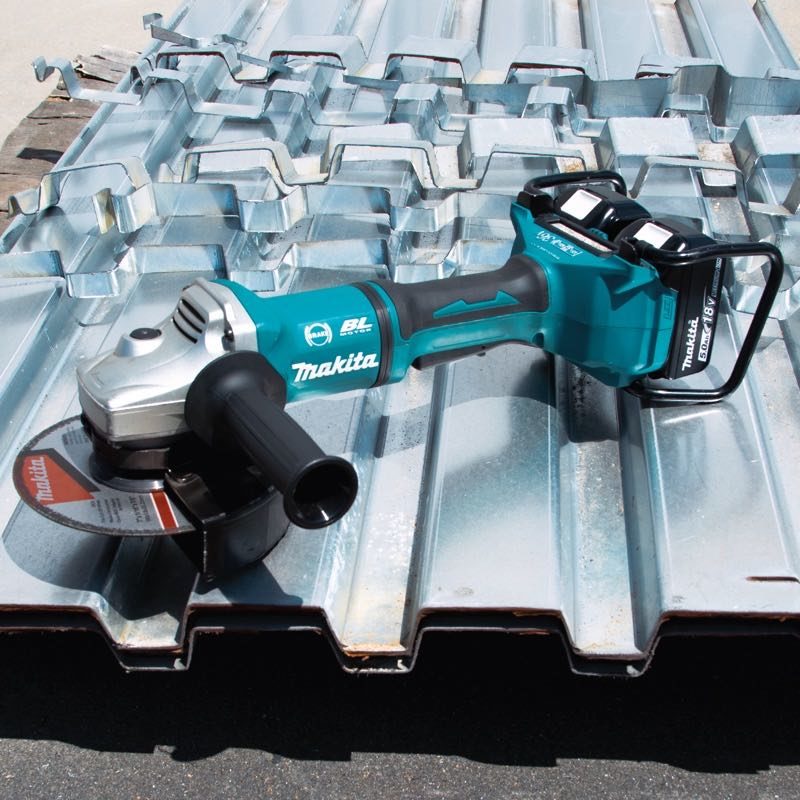 Looking for a 7โณ cordless grinder that supplies a comparable amount of power to a corded model? The Makita 18V X2 Brushless Angle Grinder looks to cover that base for you. Fueled by 2 Makita 18V LXT Lithium-Ion battery packs for 36V of power, this new 7โณ angle grinder delivers up to 7800 RPM and enough torque to handle all your grinding and cut off applications. Available in stores now, Makitaโs new grinder includes safety and efficiency features that aim to incentivize users to make the switch from corded to cordless.