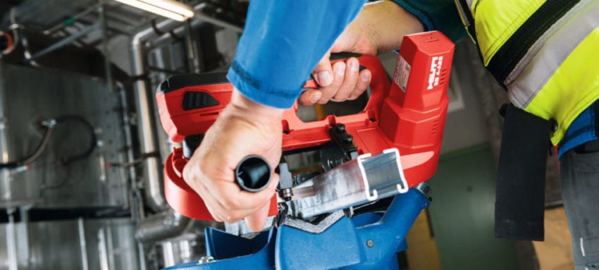 The Hilti 22V Cordless Band Saw will be a good fit for cutting metal pipes and installation channels, plastic pipes, threaded rods, 1-2โณ EMT pipes, and 1-5/8โณ strut. Hilti specially designed this new saw to produce low noise and debris.