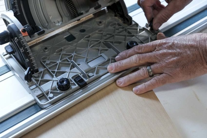 I have grown accustomed to using the corded SP6000J to break down ยพโ cabinet plywood instead of the table saw. The simplicity of setup and the ease with which tapered bevel cuts can be made make this tool a standout. So I put the cordless model through the same routine.