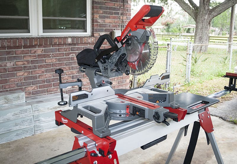 Kenny took an in-depth look at the Milwaukee folding miter saw stand back in October. I wonโ€™t spend a lot of time on it here except to say it looks like the perfect partner for this saw. With long material support extensions, adjustable feet for stabilization, and an accessories tray, itโ€™s worth considering.