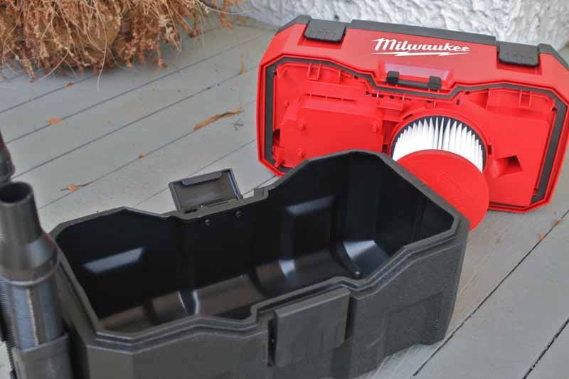 There is a robust rubber gasket around the circumference of the vacuumโs body which provides a secure, airtight seal and ensures you are getting all of the possible suction from the vacuum and not wasting any power. The filter is affixed to the body of the vacuum and can be removed by simply turning it counterclockwise by hand โ there are no tools required. Replacement 0.3 micron washable HEPA filters (49-90-1900) can be purchased from Milwaukee or any of their retail or online dealers for around $20. One filter is included and can be used for either wet or dry vacuuming, but must be sufficiently air-dried after being exposed to water (either from vacuuming water or after having cleaned and rinsed it to dislodge dirt).