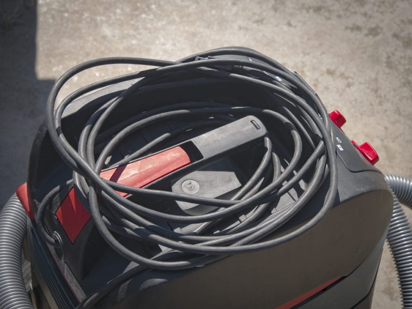 Every manufacturer seemed to take a half-hearted stab at working this feature into their models. While some were better than others, none of them really nailed it. Metaboโs effort falls somewhere in the middle here. This dust extractor has a top handle that pivots out to hold the cord. It also offers some loose top storage, but again, more thought could have been put into this design. Like most every manufacturer, the assumption is that youโll store the hose in the canister.