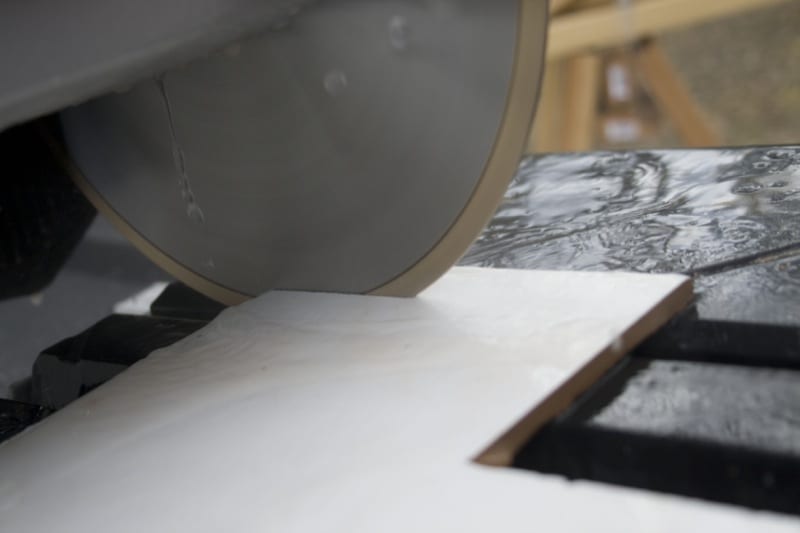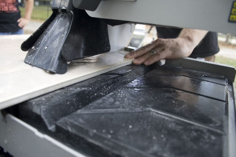 And if we got a chance to redesign the saw we would consider adding a second, closer position to bolt the saw head to for cutting 12-inch and smaller tiles. The reach of 30 inches or so felt like a stretch when cutting smaller tiles that donโt require long table travel.