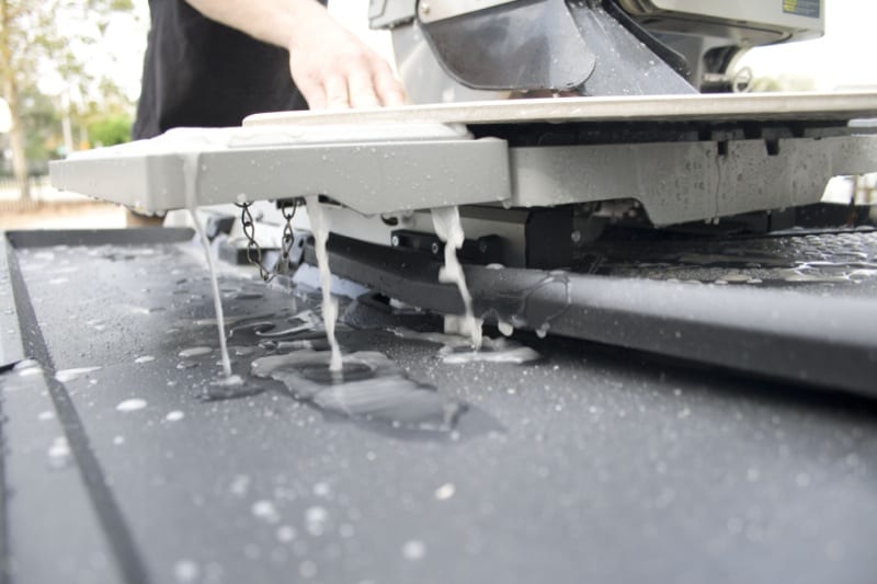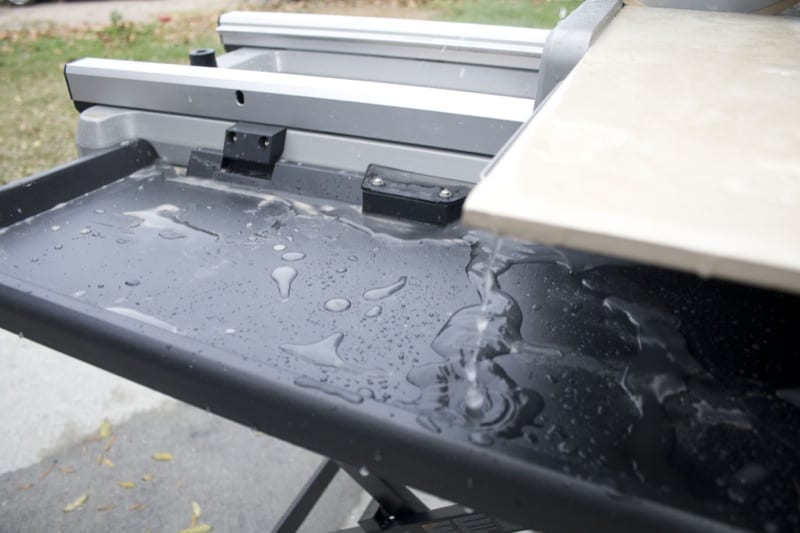 The Bosch TC10 tile saw does an excellent job of controlling stray water (and the tile powder it carries) which keeps the job site drier and cleaner. In fact, my tile contractor commented that the Bosch saw has the best water containment and is the cleanest product heโs ever used.
