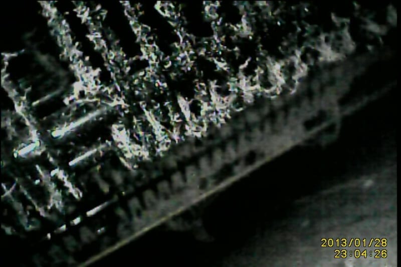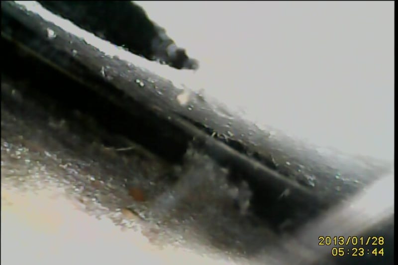 Bosch opted to construct a tool that had very few frills and simply did what it did well. Thatโs the PS90 in a nutshell. Simple, direct, efficientโฆjust like a German tool should be. Anything shot at a distance with this tool, much like the DeWalt, will appear to be monochromatic. Donโt let it fool you, the optics are simply optimized for close-up shots involving the LED lights and a narrow field of view. The auto-contrast setting on the display is a bit overactive sometimes, leading the screen to go from blueish white to brownish white seemingly at random when the LED encounters a close-up object. Still, the Bosch provided one of the nicest pictures of all the tools testedโitโs only too bad it doesnโt record. Truly, the optics and image seem to be second only to the Ridgid. This is the scope to beat if you only want real-time evaluative feature.