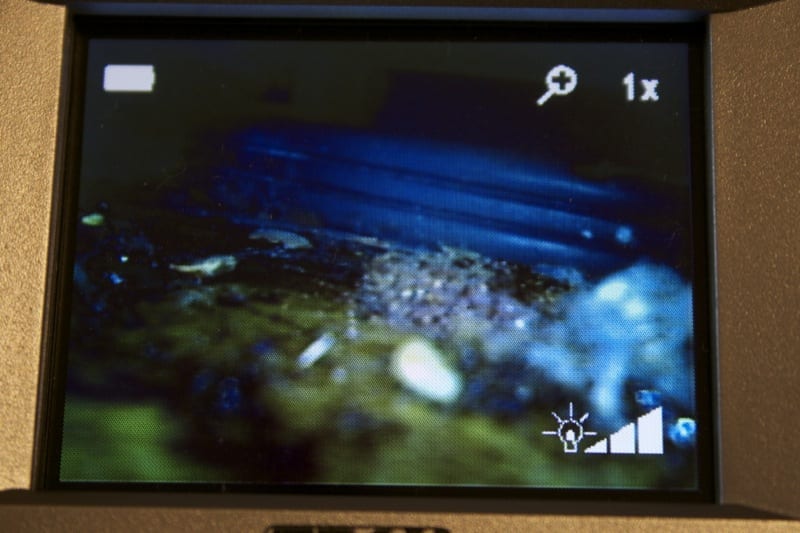 The Ryobi is a truly simple video scope, with very little in the way of frills. In all of its simplicity, it does deliver a pretty clear image thatโs easy to read on the 2.7โณ LCD screen. Color is particular, natural and it delivers very crisp images from just 2โณ away. The LED is fairly bright, but more importantly the auto-contrast function on the display is quite adept and compensates to deliver more depth and information to the LCD whenever possible. I actually like the unique form factor of the Tek4 scope as wellโitโs easy to grip and allows you to twist the probe using leverage from the square camera body.