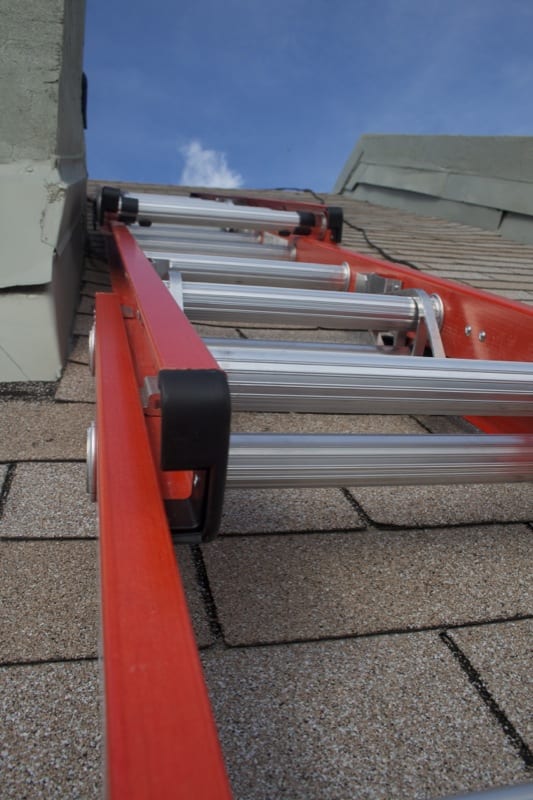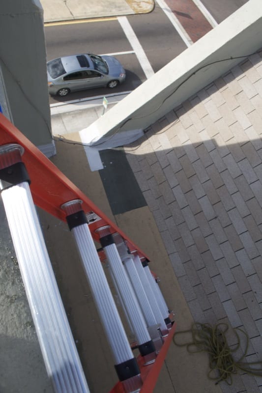 I needed this ladder to remove the lightning rods from the bell tower located on the southwest corner of a community center. Getting to the rods involved climbing all the way up to the tower, and that involved ascending several different levelsโeach of which presented limited maneuverability. Remember, this place was built before ADA standardsโฆperhaps even before common sense was invented.