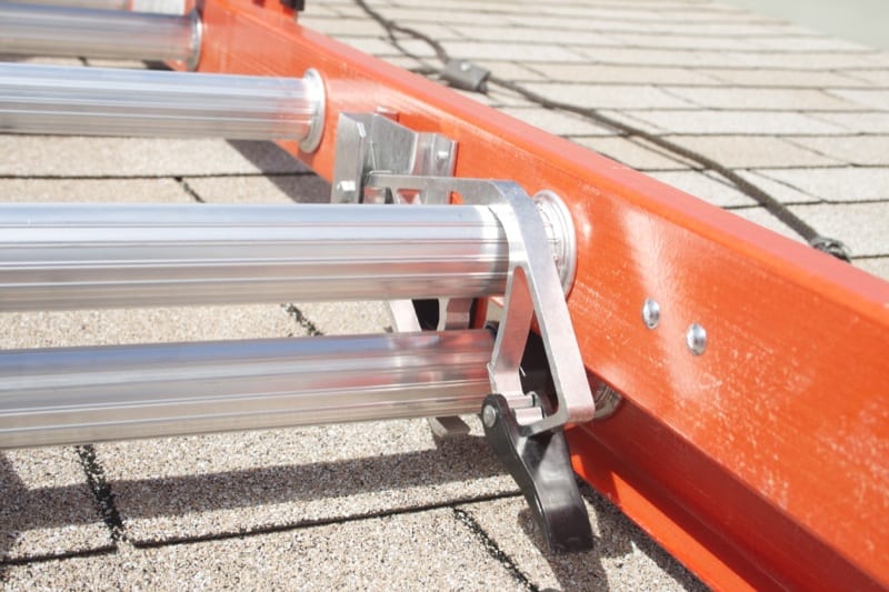 Extended, the Werner D6216-3 is the same size as a two-section extension ladderโjust over 13โฒ. So you gain portability and lose almost nothing. The Werner is also really well-built, with a strong fiberglass frame and what looked to be billet aluminum extension locks (there are four). To help secure the three piece ladder during movement and storage, Werner added a nylon storage strap that ties the top and bottom sections and keeps them from moving. We liked the D-rungs Werner used on this ladder as well, and our feet tended to keep a nice grip during ascent and descent.