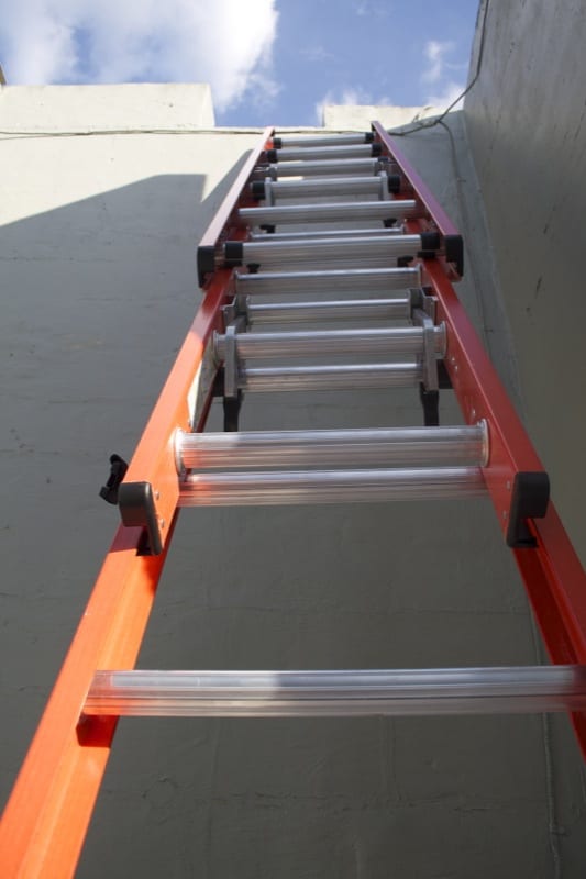 Itโs a long story, butโฆtermites. Thatโs what got me interested in reviewing theย Werner D6216-3 16 ft fiberglass extension ladder. Itโs not that termites are any particular cause for going out and buying a nice ladder, but an infestation leadsโin the South at leastโto tenting your building. And when youโre tenting a 6,500 square foot facility thatโs been standing around since the 1940โs you need some ladders. But more importantly, a ladder that provides 16โฒ of extension while only taking up 6โฒ 4โณ of space when closed is a life-saver.