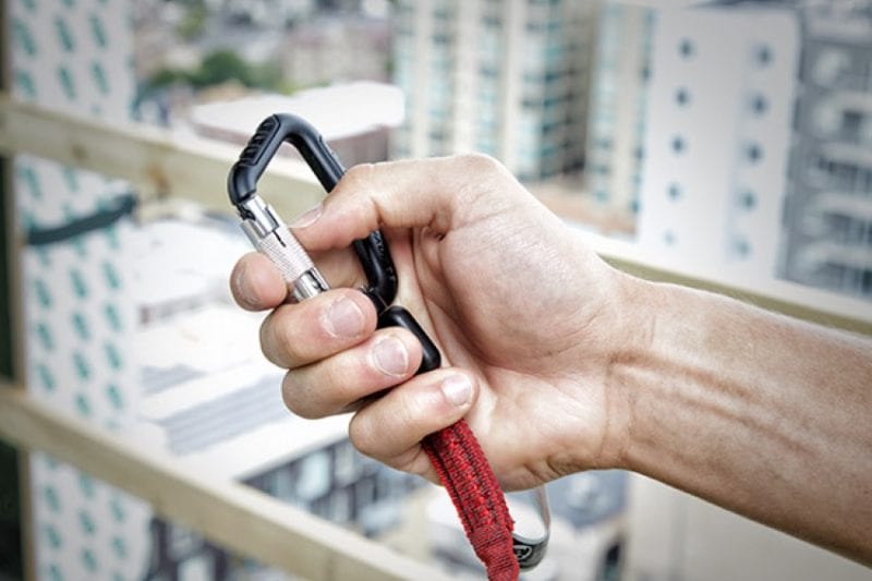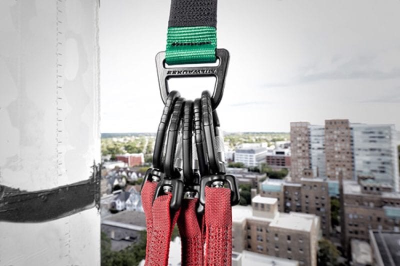 Milwaukee puts an oversize D-ring on the end thatโs capable of attaching up to 5 standard carabiners. Even though you can keep multiple crewmembers working from one point, watch your overall weight.