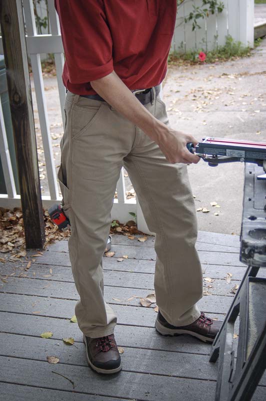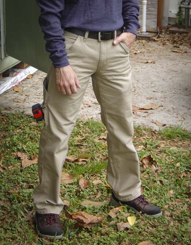 Theย Menโs Hammer Loop Pant is a smart-looking pant thatโs perfect for the contractor or tradesman who needs a comfortable, but dressy solutionย with someย design conveniences that donโt take over the entire look of the pants. Theyโre also extremely affordable at just $33/pairโI may redo my whole wardrobe! I was particularly fond of the oversized side thigh pockets that were perfect for my iPhone 5S. The secondary pocket was great for holding a tape, and the back pockets are really deep, so your wallet stays nice and secure. These pants are made fromย 100% cotton canvasย with triple needle stitching for reinforcement. Theย hammer loop on the left side is positioned below the back pocket and uses an oversized, but tightly-stitched loop for hanging a hammer. These pants really wear well. Theyโreย attractive, durable, and they have a classic fit that doesnโt either hang too loose or end up looking like skinny jeans. If Khaki isnโt your thing, you can also find these pants in Field Green, Gravel, and Hickory. You donโt want to wear these pants for doing jobs that involve grease or mortar, as theyย offerย more of a dressy look than a rugged designโat least that was my preference. Still, the low price and durable construction may cause you to think otherwise.