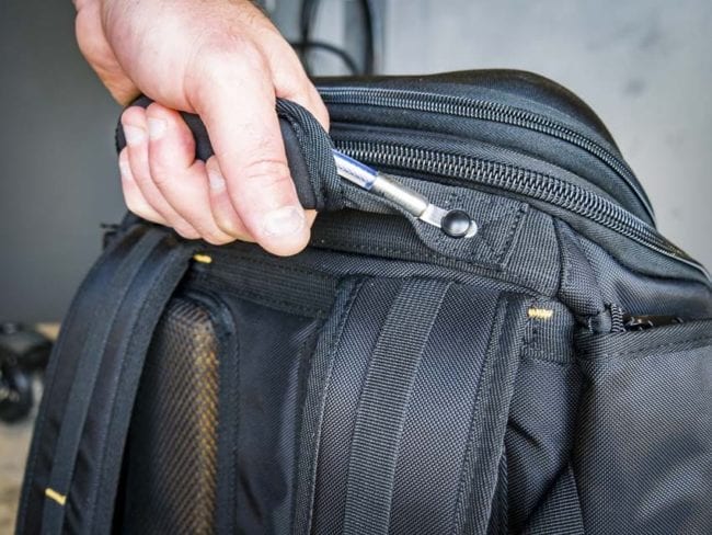 The braided metal wire through the handle, however, is a feature found on all of these high-end bags. It toughens up a vulnerable area since youโ€™re likely to move theย Fluke Pack30 backpack around the job by this handle quite a bit.