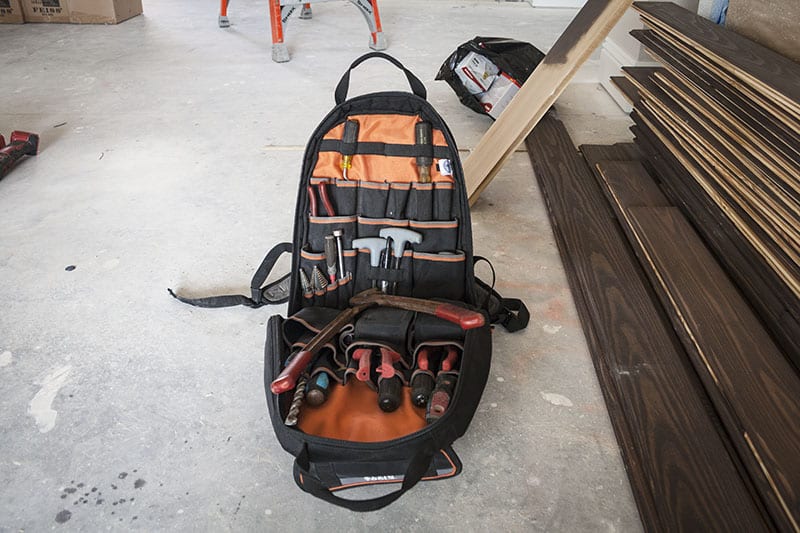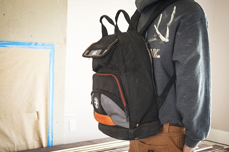 I loaded up the 35 pockets with all my tools and headed off to the job. Right out of the gate, the Klein Tradesman Pro Tool Backpack was a big upgrade for me. Like a lot of tradesmen, I often use any old toolbags, and often the bags that come with new tools. Those bags will transport your tools for a while, but there are no pockets for organization and no shoulder straps for transport. The Klein backpack might seem like an indulgence that you don’t want to spring for, but, for me, it started to feel like more of a necessity.