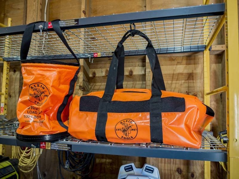 Each of Klein’s new hi-viz orange bags is made vinyl that helps protect the tools inside from the environment on the outside.