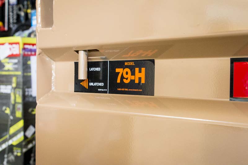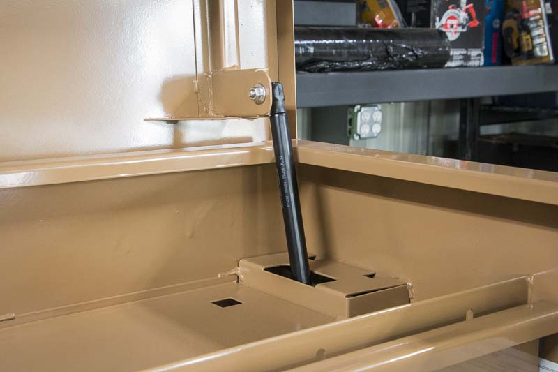 The Knaack 79-H has the same thick gaugeย steel youโve come to expect from a good quality job box, and theย dual gas struts provide a nice assist whenย opening the box lid.