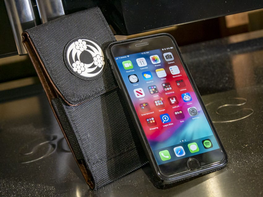 The Southwire Phone Pouch fits your plus-size phones. I’ve got an iPhone 7 Plus, and even with the slim case on, it fits into the pouch pretty easily. A magnetized flap fold over and snaps shut to keep the phone from becoming a drop risk, or from sliding out of my pocket onto the floor when I’m on my back working on something.