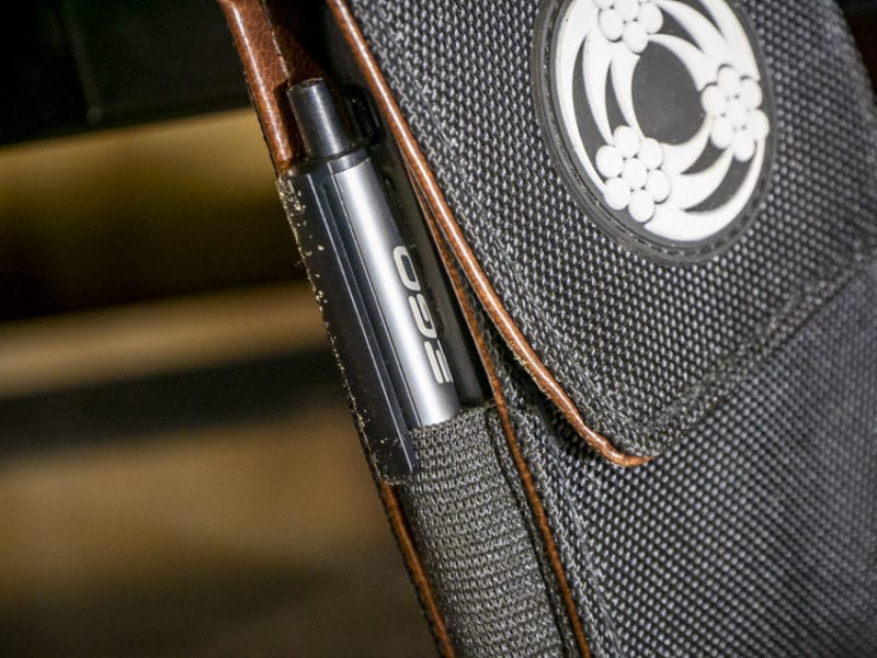 Elastic straps hold the case together. Not only do they provide some flex for thicker phones, but I’ve found that it’s a good place to store a pen or two.