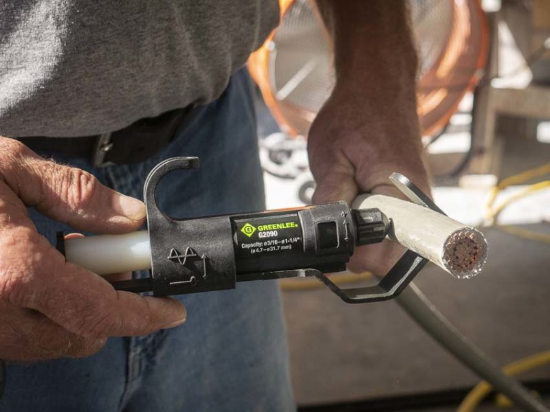 We’re seeing more and more industrial applications where the plant won’t allow exposed blades or razors. OSHA requirement also prevents the use of open blades in many situations. When safety and processes take precedent, the Greenlee G2090 cable stripping tool gets the job done.