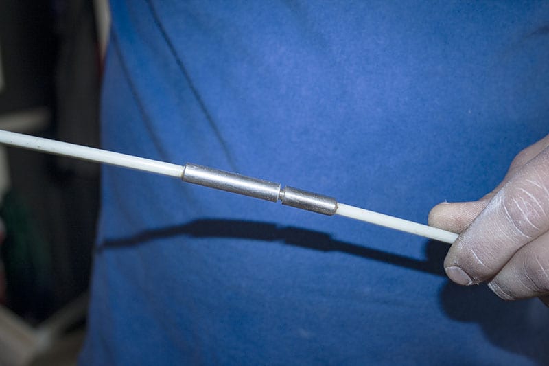 These accessories are probably self-explanatory, but thatโ€™s never stopped me from explaining something! You can wind wireย around the eyelet and pull it. The hook can grab a bundle of wire or perhaps a tool that you dropped. A whisk is most often used to fish the rodย to the place where youโ€™ll attach the wire and pull it. The rounded design of the whisk allows the end of the rod to travel easily to its destination without getting snagged. The ball chain is versatile: tape the wire to it and allow it more leeway as itโ€™s being pulled. But thereโ€™s a more clever way to use it Iโ€™ll discuss later.